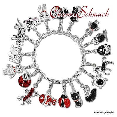 - Bengal Katze - ein Glitzer Charm mit tschechischen Kristallen und aus Sterling Silber (925) für Charmsarmband oder Halskette. Der schillernde Anhänger passt auch an Armbänder anderer Marken oder kann als Kettenanhänger oder Anhänger für ein Mobiltelefon genutzt werden. Die Zirkonia Kristalle erstrahlen auf dem Charm in der Farbe weiß und schwarz.