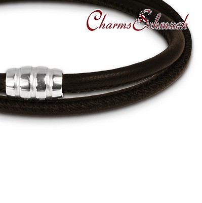 Ein Nappa-Leder Armband doppelt in der Farbe braun mit Sterling Silber 925er Magnet Verschluss. Die Breite des Nappaleder Bandes ist 4mm und die Länge ist 38cm.