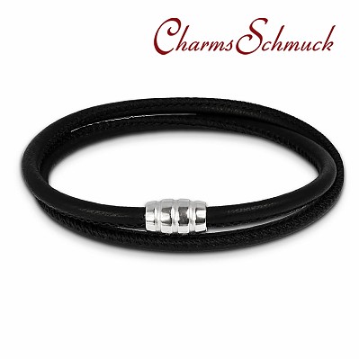 Ein Nappa-Leder Armband doppelt in der Farbe schwarz mit Sterling Silber 925er Magnet Verschluss. Die Breite des Nappaleder Bandes ist 4mm und die Länge ist 40cm.